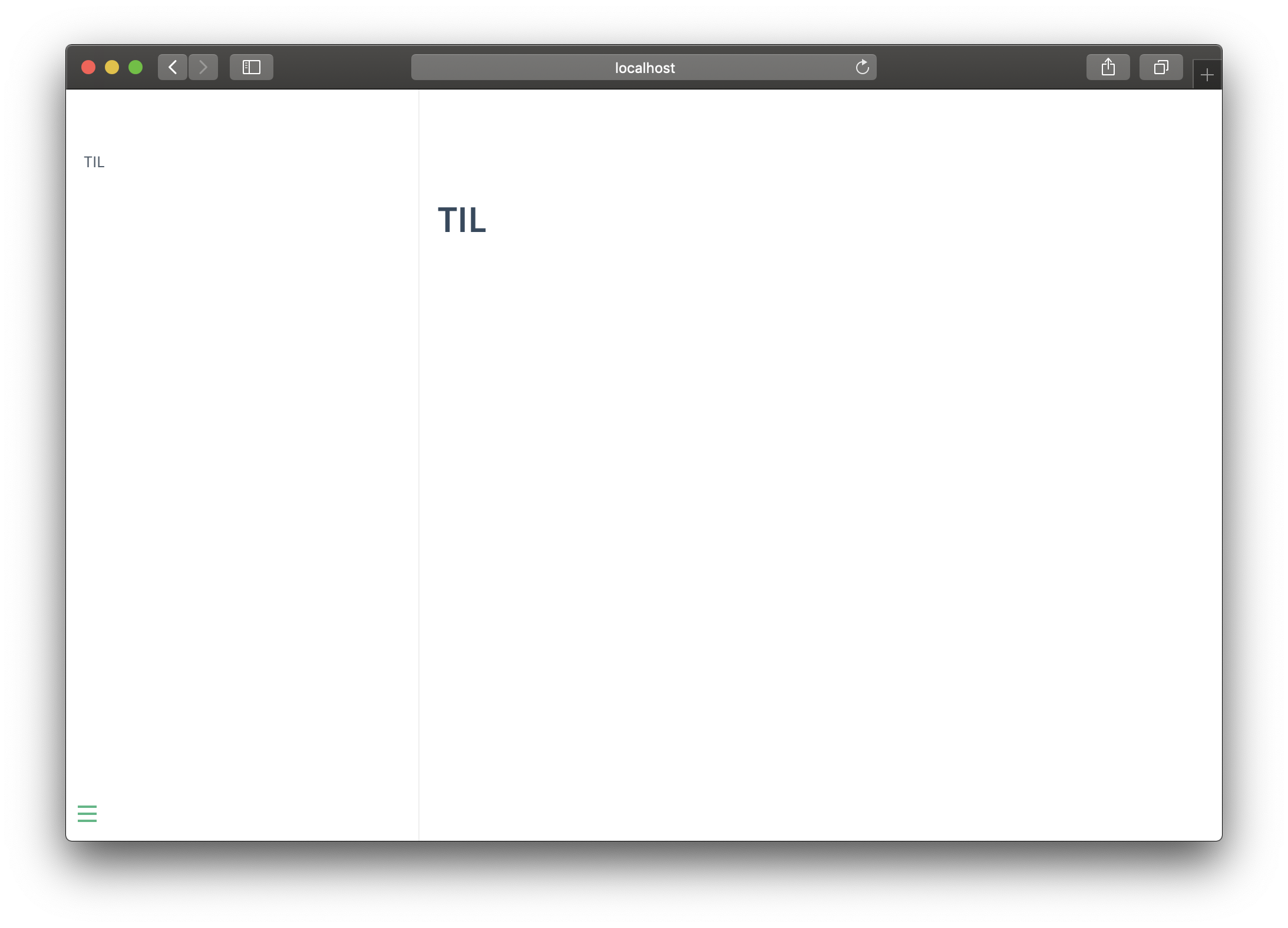 docsify serve터미널 창에 출력 된 주소로 이동해서 페이지를 확인해 볼 수 있다.