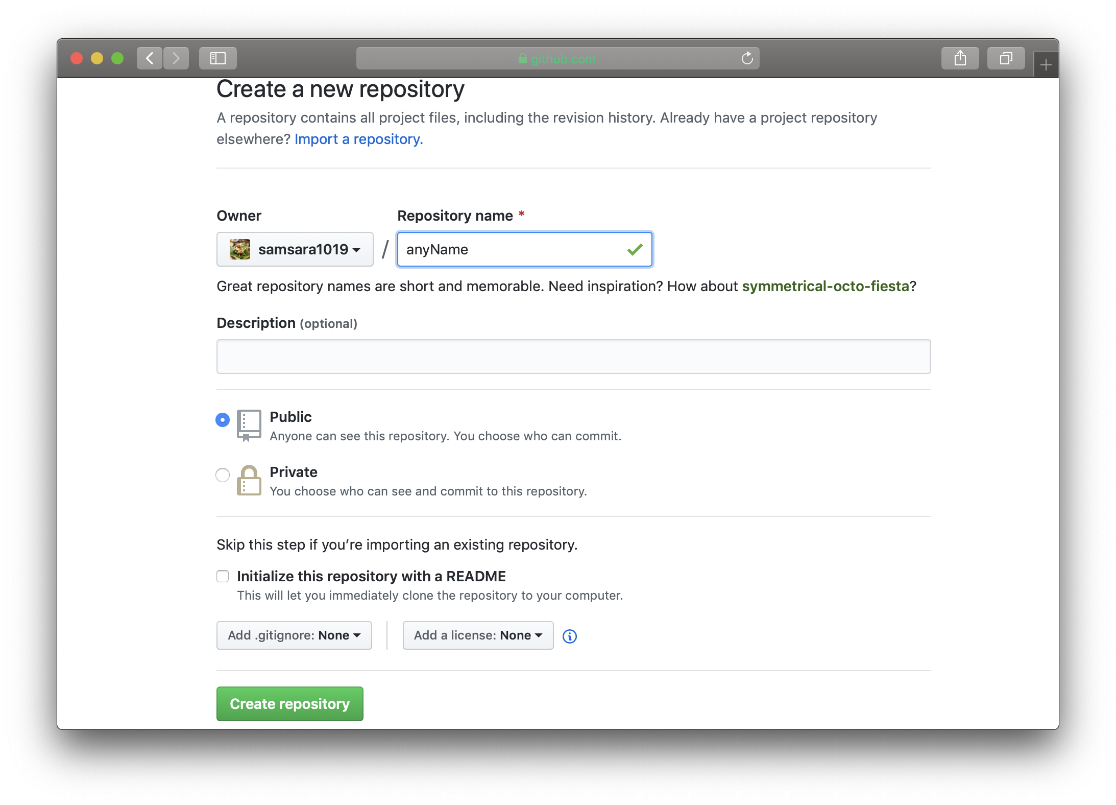 repo 이름은 원하는대로 하면 된다. 나 같은 경우에는 TIL로 했다!